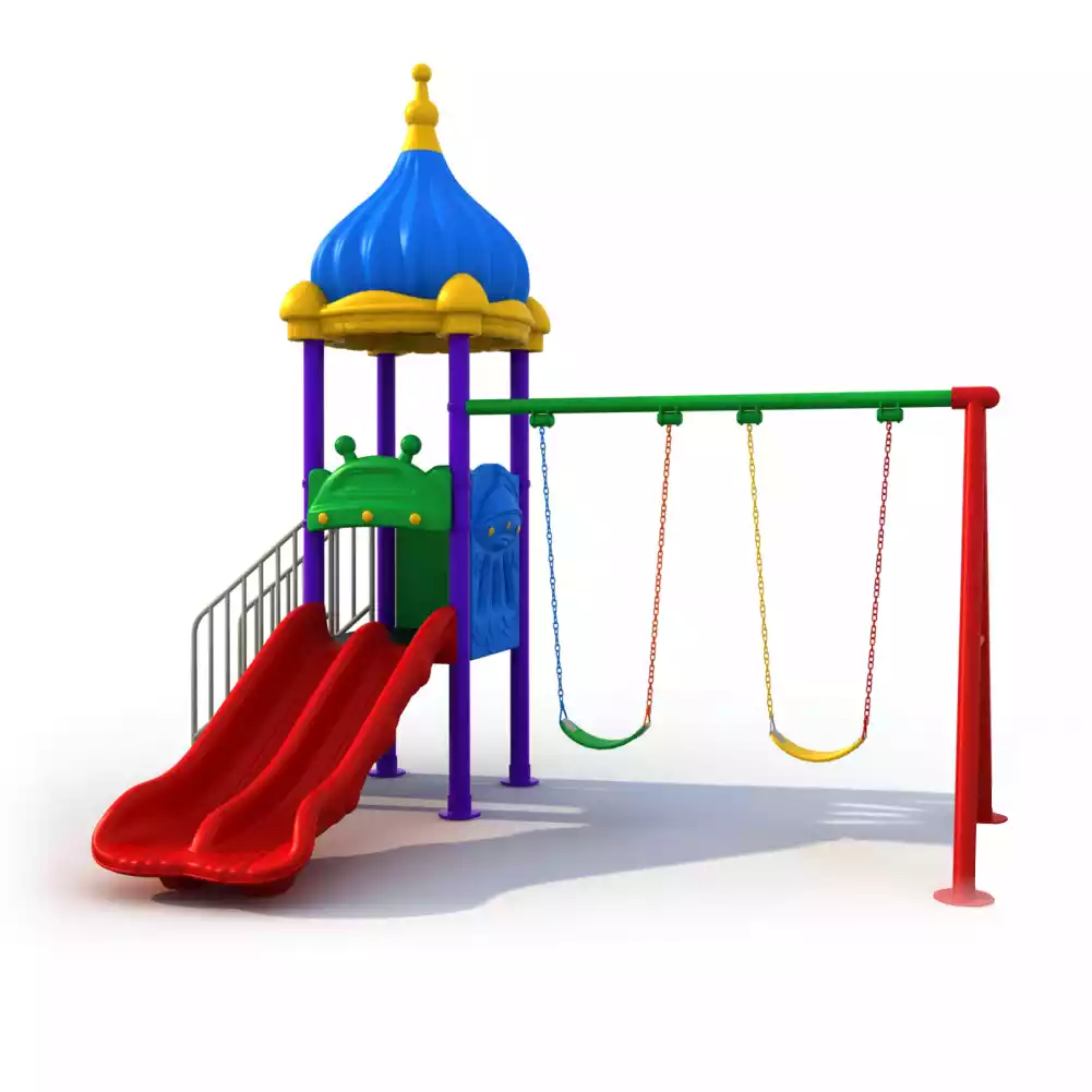 A compact and colorful outdoor play unit designed for safe, everyday fun at homes, nurseries, and small play areas.