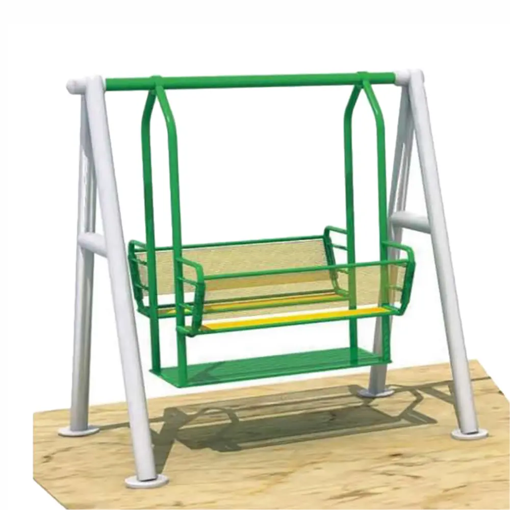This compact outdoor kids swing features a hanging bench seat and a space-saving design. Built with a durable, weather-resistant metal frame, it is ideal for gardens and small outdoor play areas, offering comfort and safety for children.