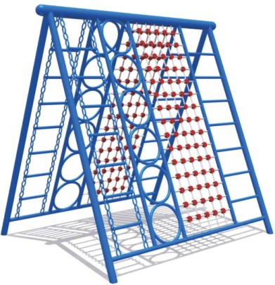 A compact outdoor climbing unit designed for active play. It combines a rope net climbing wall with ladder access on the sides, making it ideal for playgrounds, schools, and gardens. Supports physical development by improving balance, coordination, and upper/lower body strength.