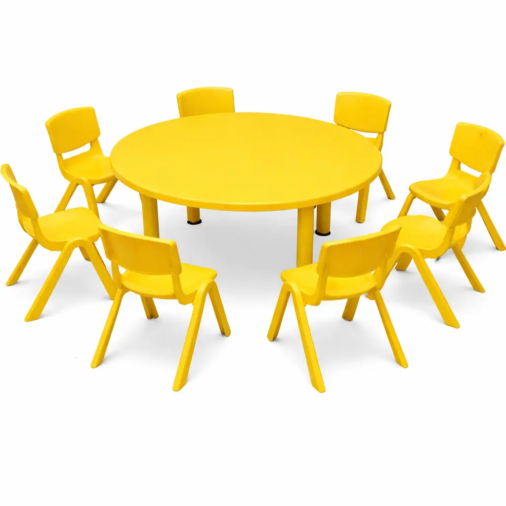 A tidy seating set that brings kids together for drawing, reading, crafts, and group play. The round layout supports interaction and sharing, making it a great fit for playrooms, nurseries, and preschool corners.