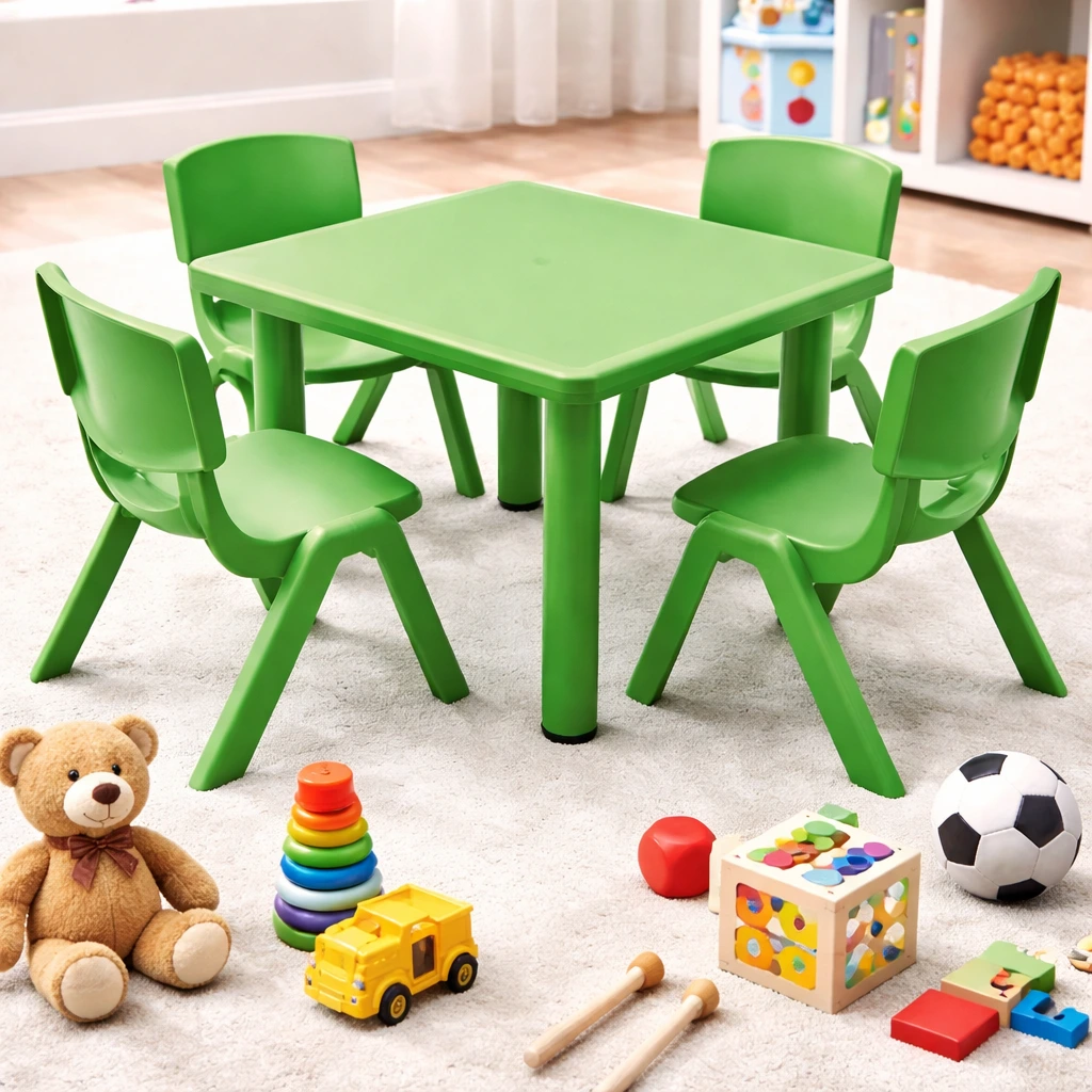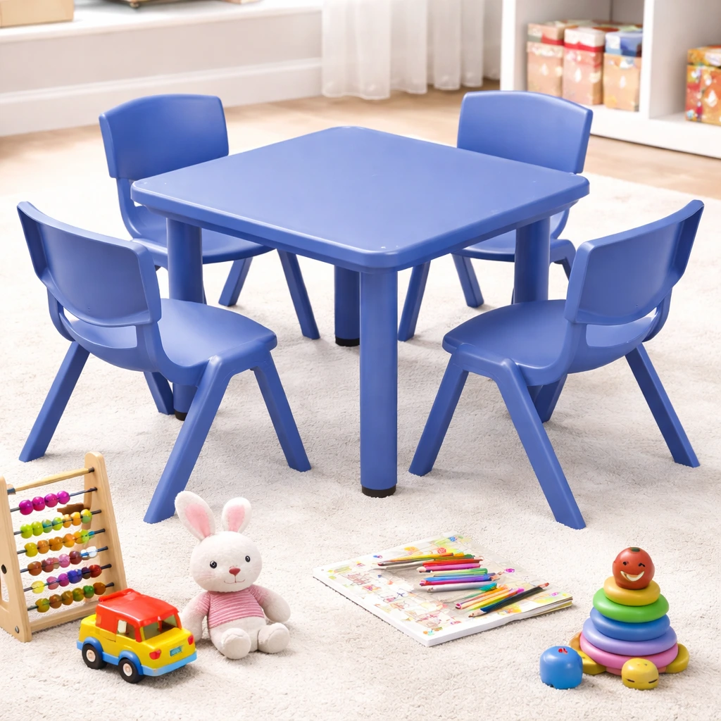 Square kids table with 4 chairs—perfect for learning, crafts, and everyday play.